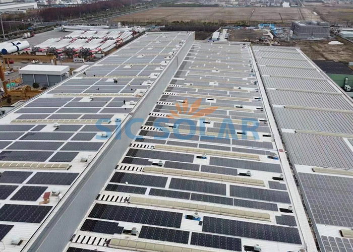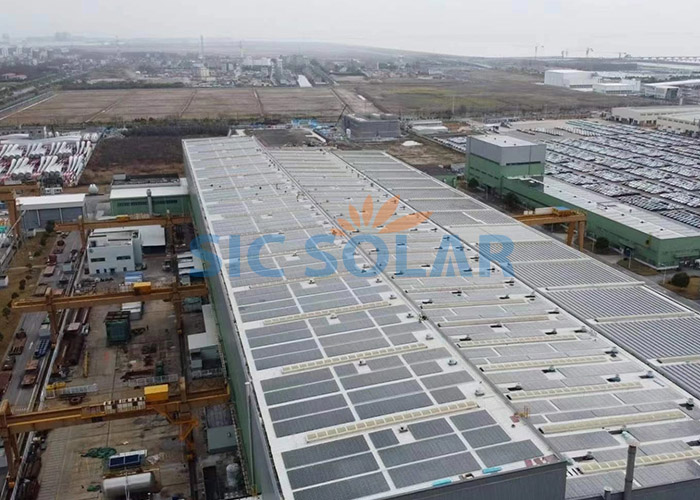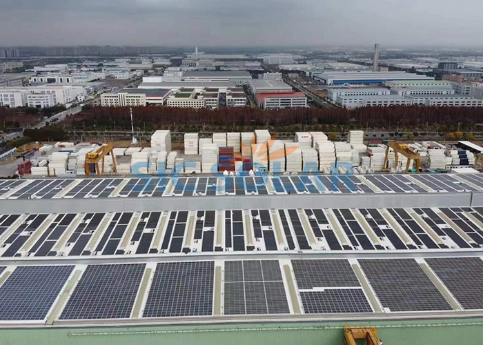 Sistemas de montagem de painéis solares em telhados metálicos com capacidade de 1,7 MW na Índia.