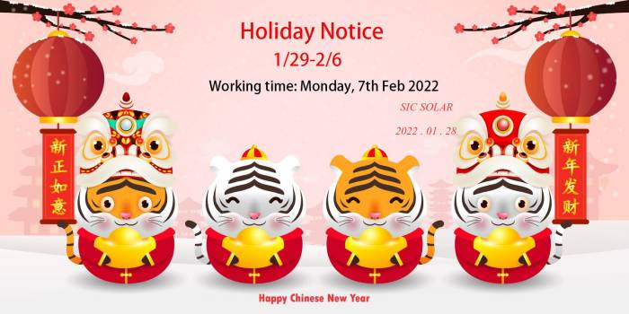 31 de janeiro é o Ano Novo Chinês, e SIC A equipe da SOLAR estará de férias entre 29 de janeiro e 6 de fevereiro.