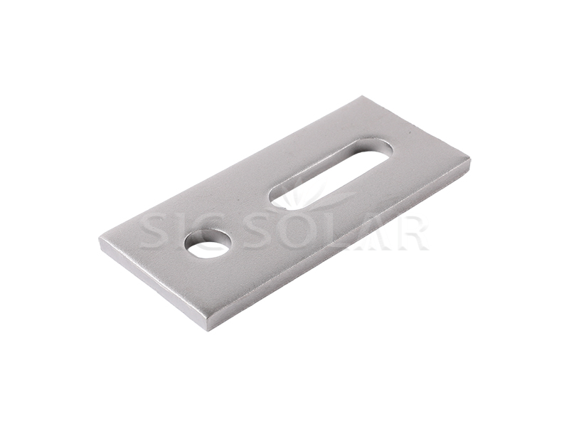 Placa adaptadora, suporte inferior para montagem de painéis solares em telhados. É fabricado em aço inoxidável SUS304 e possui tratamento de superfície jateado.
