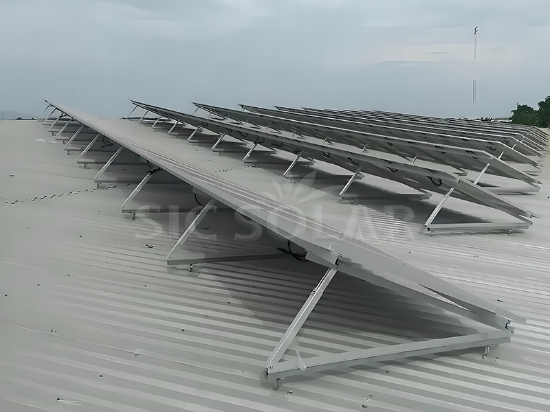 Suportes de telhado triangulares ajustáveis para painéis solares É adequado para todos os tipos de telhados, incluindo telhados planos, inclinados e curvos. É compatível com todos os tipos de painéis solares, incluindo silício monocristalino, silício policristalino e painéis de película fina, podendo ser aplicado em diferentes projetos de energia solar.
