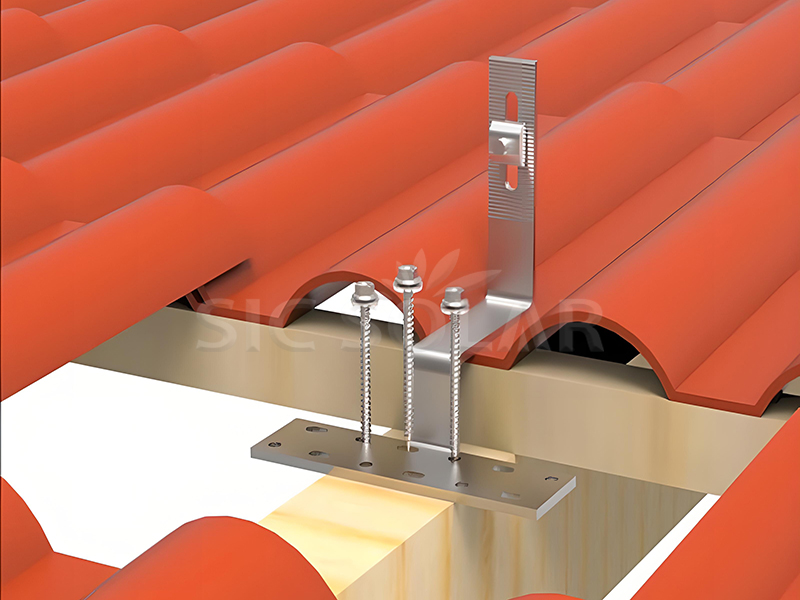 3️⃣ Inserir parafusos – Alinhe o suporte de montagem solar e insira os parafusos.