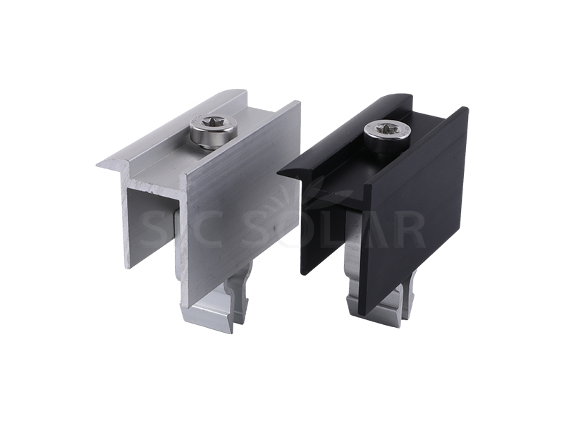 Braçadeiras solares de fixação rápida com encaixe central/extremo Com parafusos longos e curtos, a braçadeira pode acomodar painéis solares com espessura de 29 mm a 53 mm. Tanto a braçadeira quanto o parafuso de alumínio estão disponíveis nas cores prata e preta.