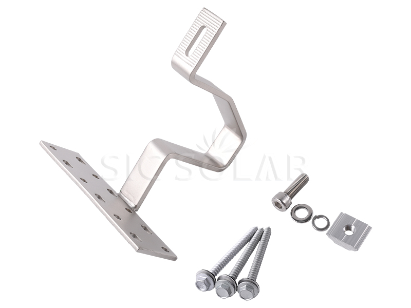 O gancho padrão de aço inoxidável para telhado é utilizado para montar e fixar painéis solares em qualquer tipo de telhado inclinado. O material utilizado na produção desses ganchos é o aço inoxidável, resistente e anticorrosivo; portanto, garante uma longa vida útil, além de um bom desempenho mesmo em condições climáticas adversas.
