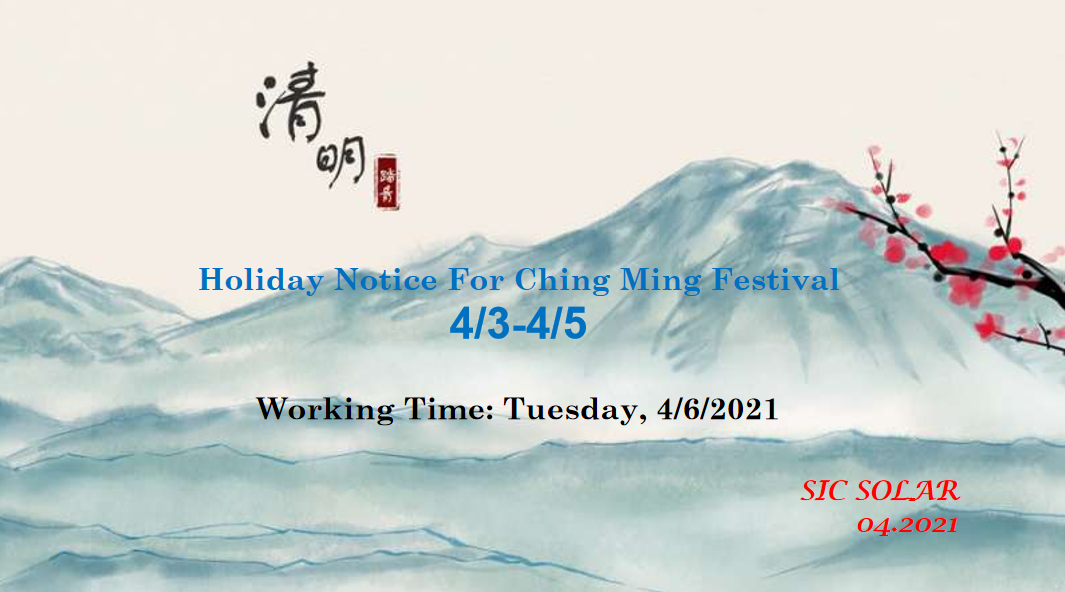 O dia 4 de abril é o Festival Ching Ming, e os funcionários de SIC Estará de férias entre 3 e 5 de abril.