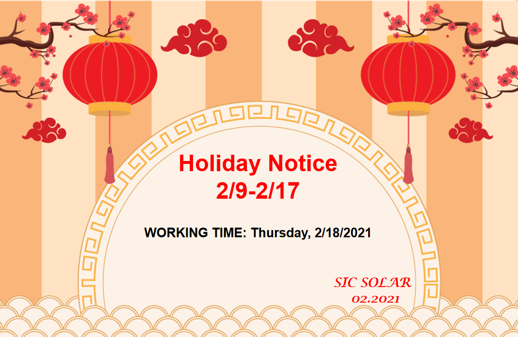 Aviso de Feriado para o Ano Novo Chinês | Sic-solar.com