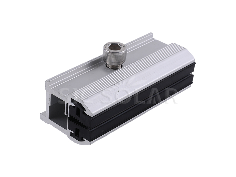 braçadeira final para painel solar de película fina Pode ser usado para painéis solares de película fina e módulos solares sem moldura. Os módulos solares sem moldura serão protegidos pela borracha interna. O módulo fotovoltaico de película fina será fixado firmemente com a força adequada.
