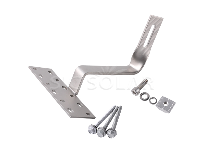 Ganchos de telhado com torção para telhas, para estrutura de montagem de painéis fotovoltaicos.