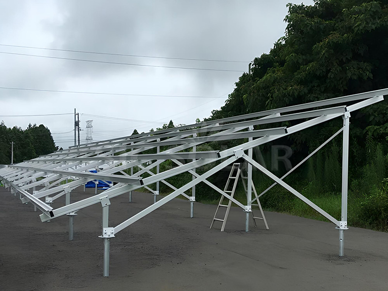 Suporte de montagem em solo tipo W para painel solar É projetado para instalação no solo com locais de instalação flexíveis. Seja em campo aberto ou em terreno plano próximo a um edifício comercial ou residencial, o sistema pode se adaptar facilmente a diferentes ambientes.